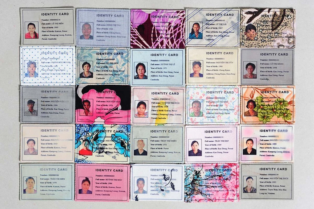 Nguyễn Thị Thanh Mai, ID Card, 2014, heat transfer prints on recycled fabric, 5.7 x 8.1 each. Image courtesy of the artist.