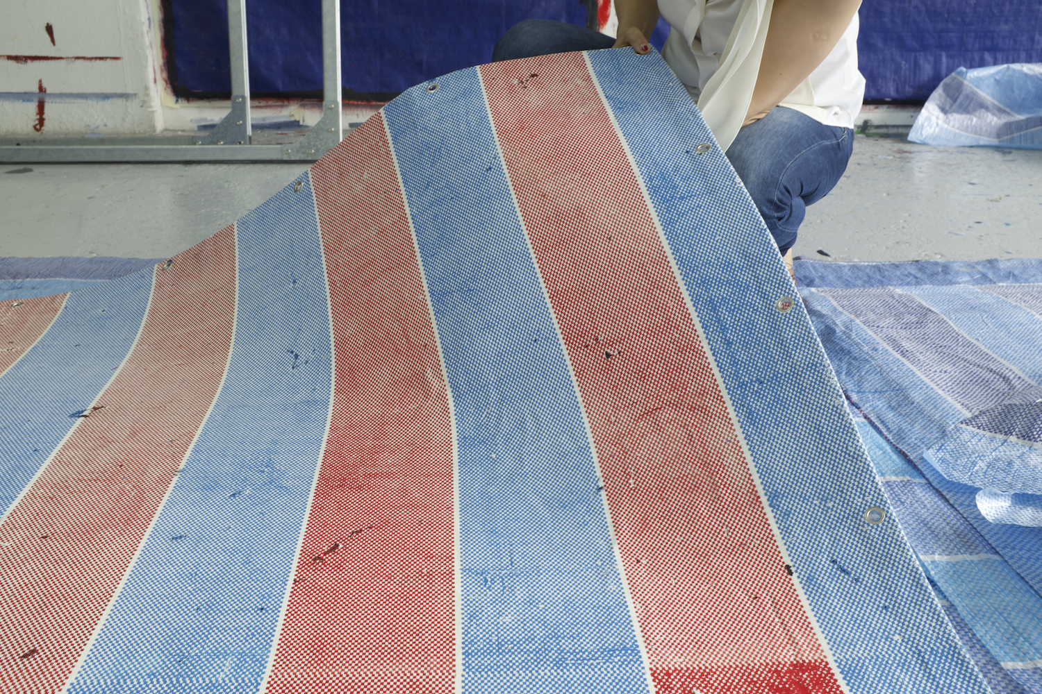Kanchana Gupta, Tarpaulin #126, Red and Blue. Image courtesy of the artist.