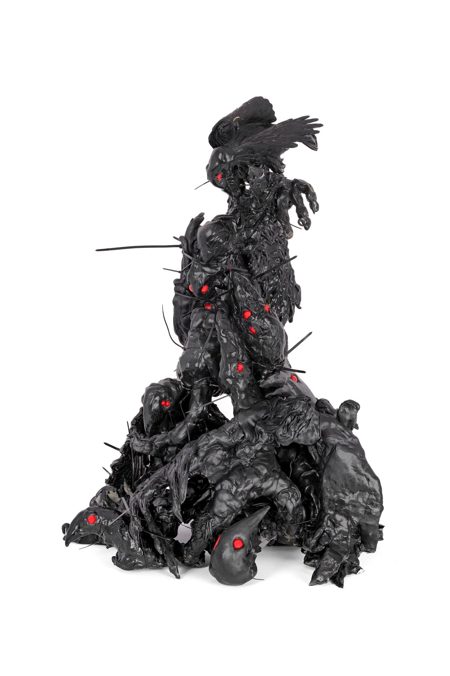 Nawin Nuthong, Crows Fountain, 2023, epoxy clay, wood, beads and cable ties, 50 x 50 x 90cm.