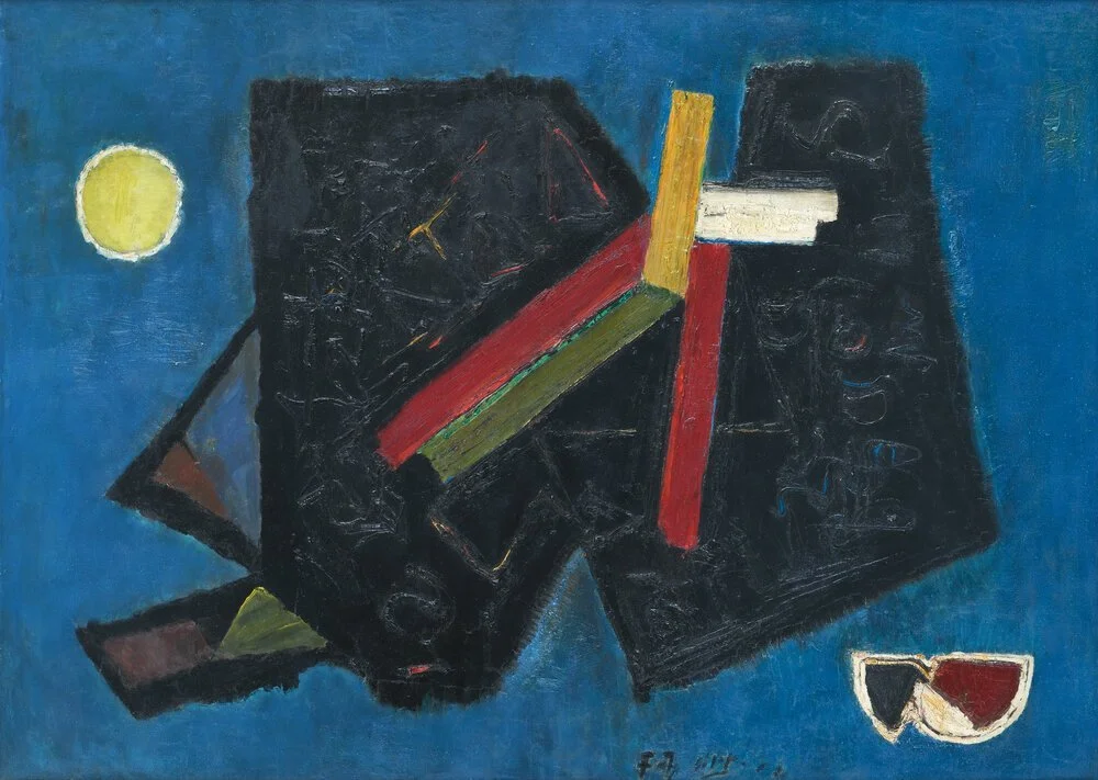 Fadjar Sidik, Abstraksi, 1967, oil on canvas, 138×100 cm. Image courtesy of Art Agenda, S.E.A.