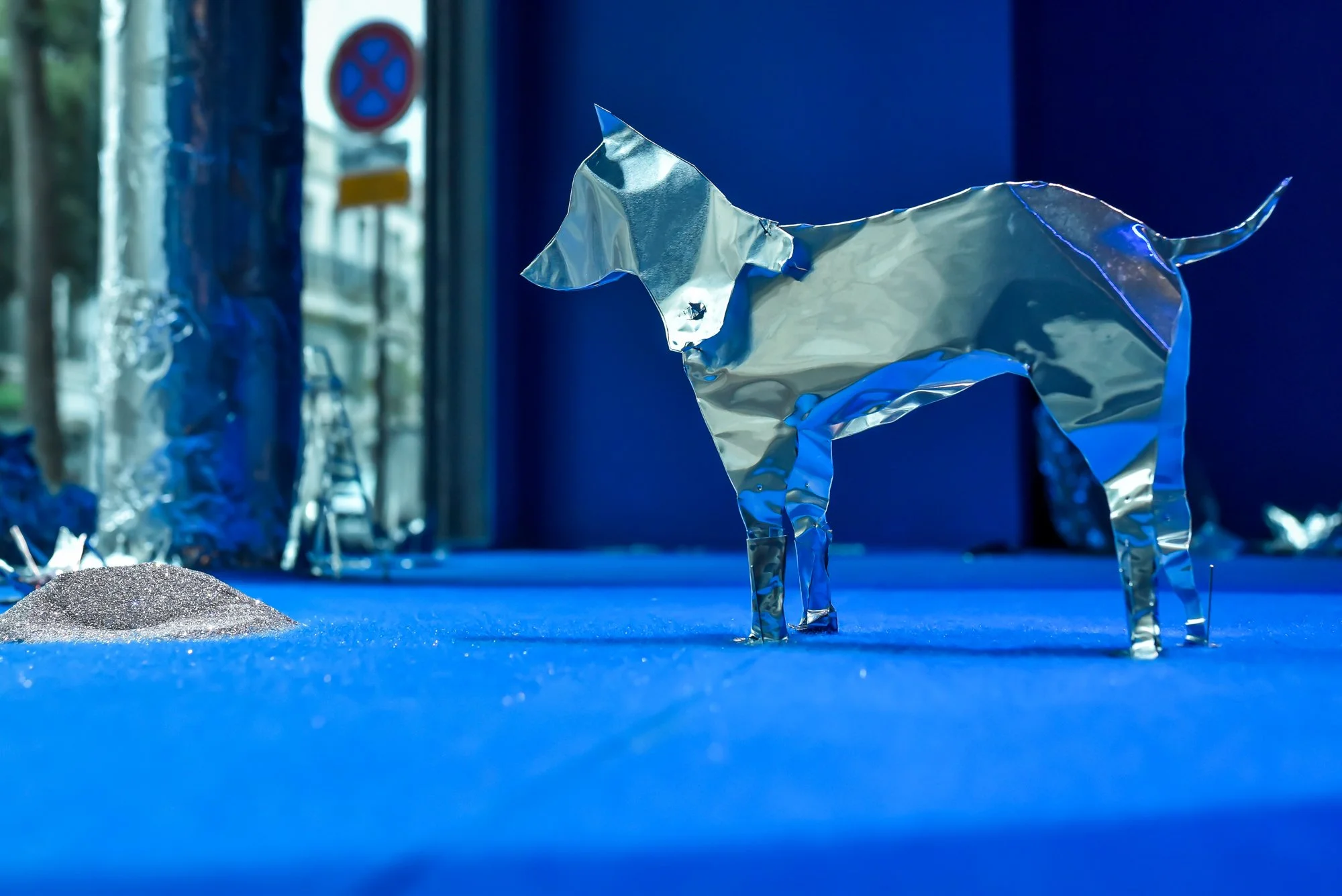 Hằng Hằng, The Reason Is A Dog. The Reason Is A Flower., 2025, performance documentation taken during the exhibition opening at Galerie Bao, Paris. Photo by Nancy Karam. Image courtesy of Galerie Bao.