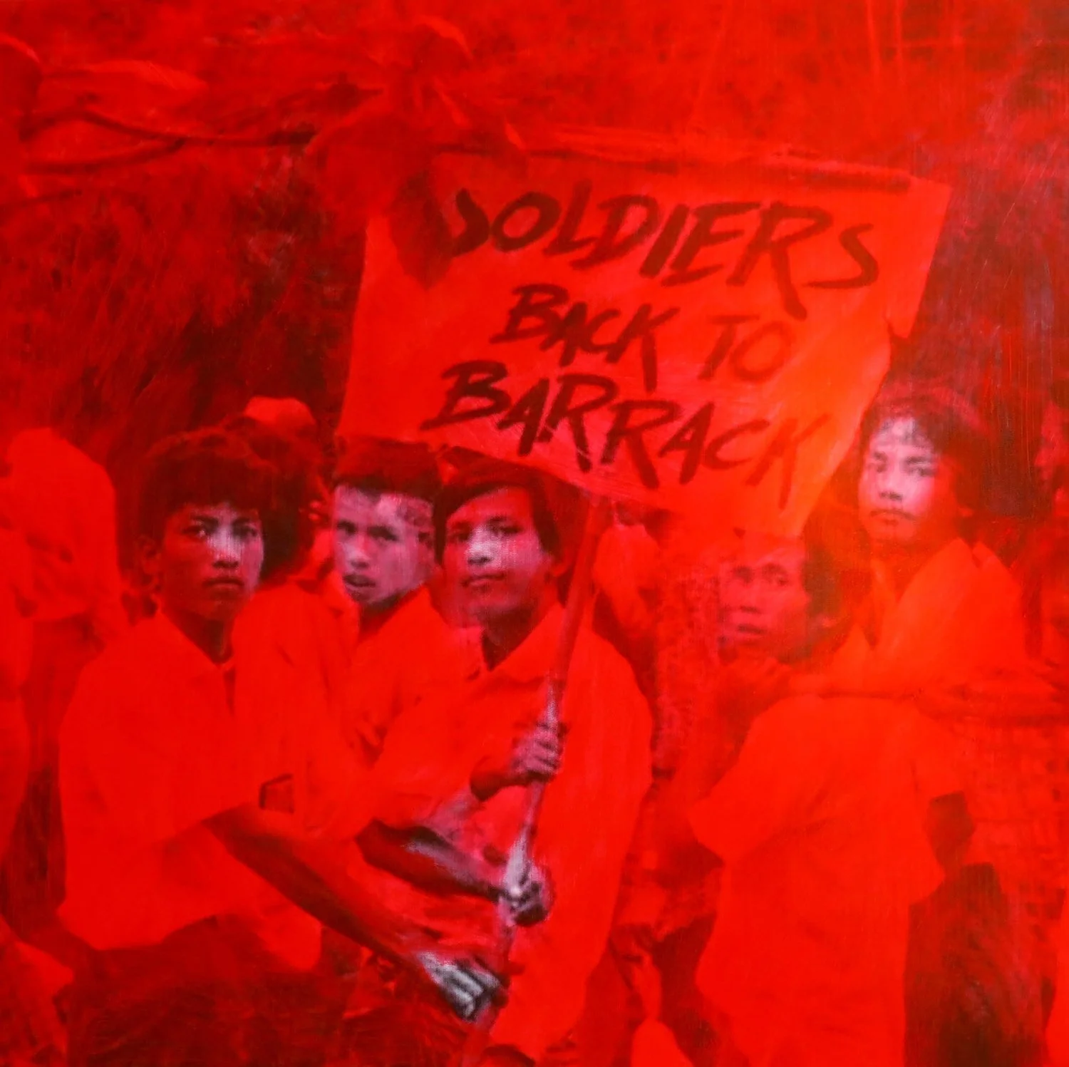 Nyein Chan Su, Back to Barrack, 2014, acrylic on vinyl, 92 x 92cm. Image courtesy of Intersections Gallery.
