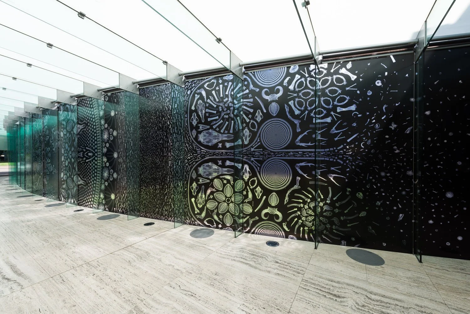 Nona Garcia (b. 1978, Manila), Hallow, 2015-2018, site-specific installation at QAGOMA, glazed digital backlit film. Image courtesy of the artist. Photograph by Natasha Harth.