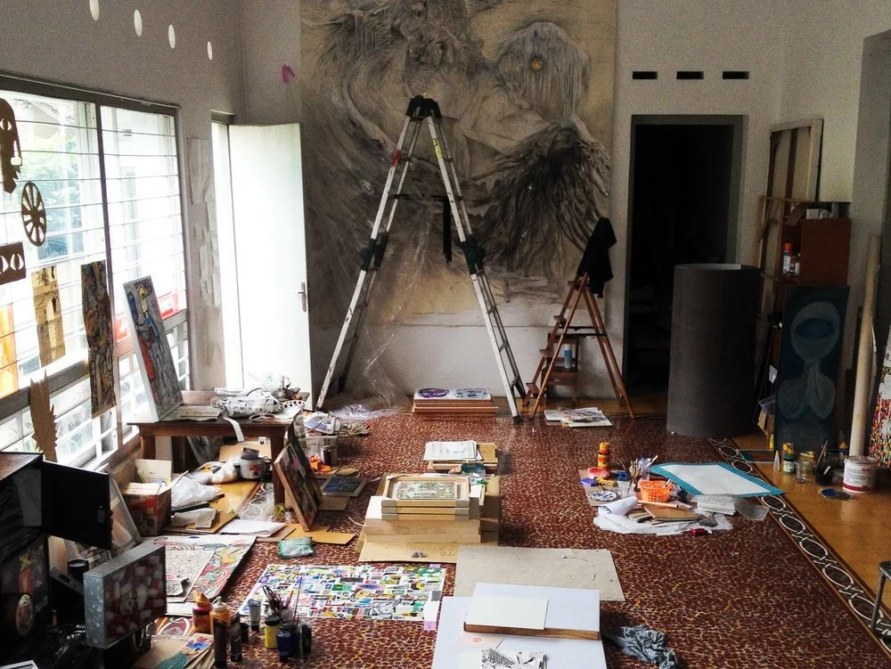 Artist’s studio in Rumah Kijang Mizuma, artworks by Aiko Yamamoto and other artists, photograph taken in 2015. Image courtesy of Rumah Kijang Mizuma and Mizuma Gallery.