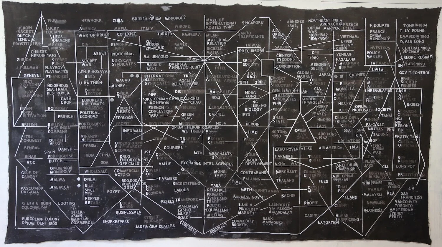 Burmese artist Sawangwongse Yawnghwe presents The Opium Parallex, which seeks to detangle the various agents and factors involved in the opium industry traversing the Shan State. Speaking about being included in the Biennial, Yawnghwe says, “When you look at the diagram by Ho and Hsu, it represents the “incompleteness” of possibilities, where located in the centre is “The Void”. The Opium Parallex and its footnotes elucidate this incompleteness that is filled with seemingly unimaginable situations, or in this case, the “void”.” The artist’s work is also a critique of nation-states and reveals the hidden narratives of minorities when viewed in tandem with his artistic oeuvre.