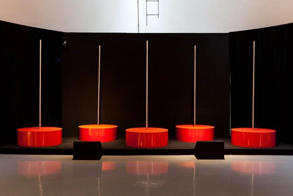 One such work is Michael Shaowanasai’s Exotic 101 (1997), which presents a video installation containing a satirical instruction film on how to pole dance, with the artist as the dancer. The film highlights the juxtaposition of Thailand’s highly religious society with strict sexual and gender norms against its ironically booming sex industry. The Thai body then becomes a battleground for the clash of values between the society’s normative standards, and the “exotic” body showcased for sex tourism. Accompanying this tongue-in-cheek critique are five pole-dancing platforms, emphasising the artist’s dark humour as they become supporting structures for exhibition-goers to rest on and contemplate.