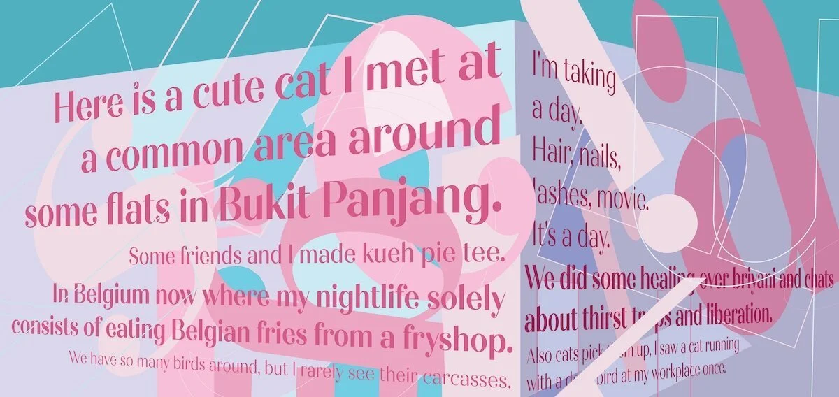 Pooja Nansi, Coping Mechanisms (artist impressions), 2019, digital print on vinyl sticker, typography, augmented reality (AR) and performance poetry, dimensions variable. Image courtesy of Michael Ee.
