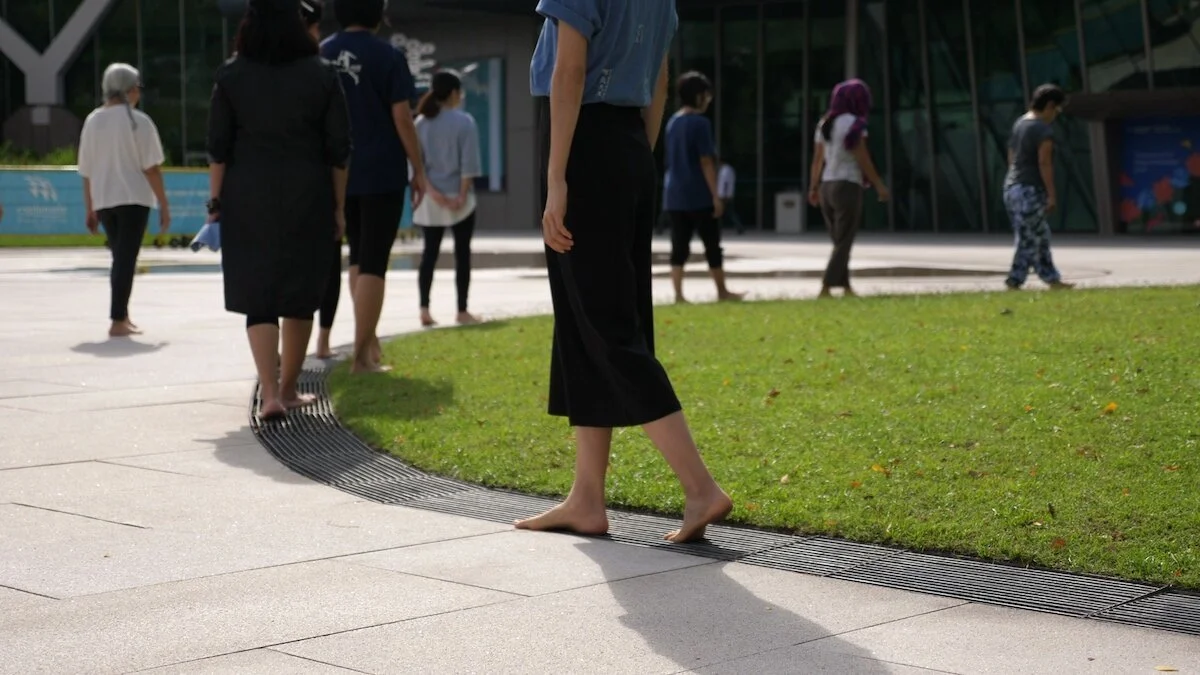 Amanda Heng, Every Step Counts (workshop documentation), 2019, multi-disciplinary project: workshop, text work in public space, archival footage, video projection and live performance, dimensions variable. Image courtesy of the artist and Denise Yap.