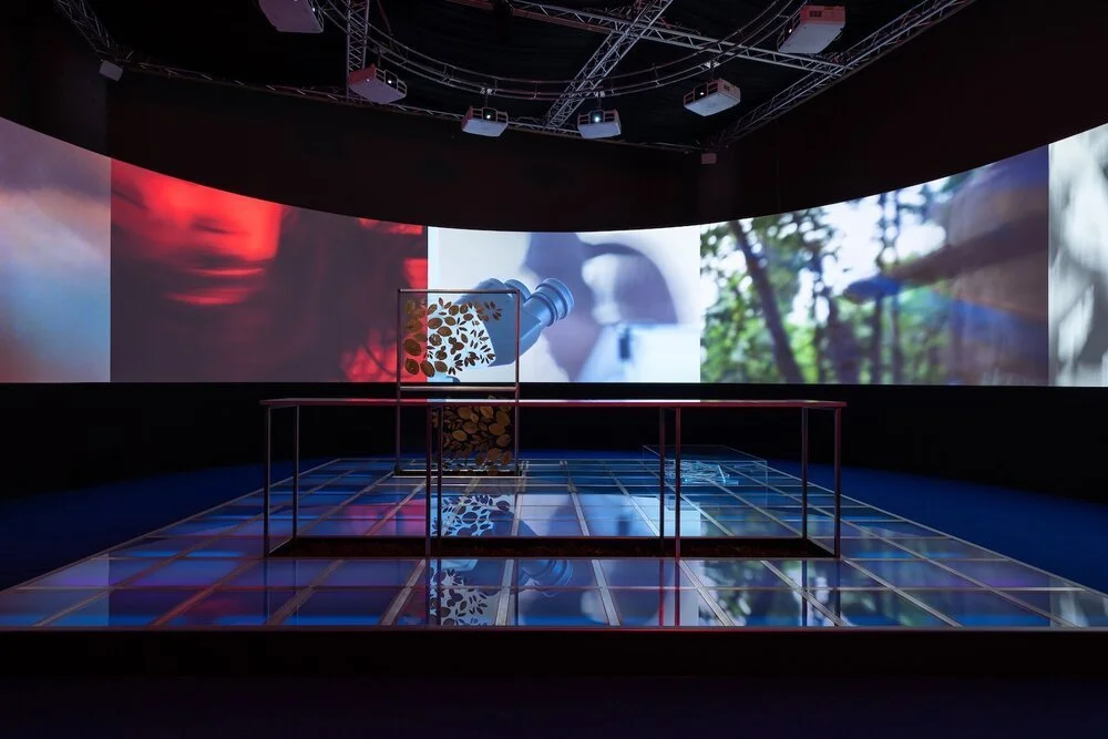 In this regard, I really enjoyed Taiwanese artist Ting Chaong-Wen’s work, an immersive installation titled Virgin Land. It's in a circular room with five projections lining the walls. There’s also a glass platform in the middle of the room, among other things. As you view the films about the Japanese colonisation of Taiwan and how they exploit the land’s resources, there’s an added sense of precarity and fragility from standing on the glass.