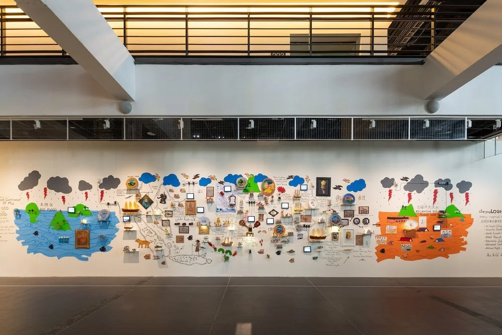 Roslisham Ismail (a.k.a ISE), ChronoLOGICal, 2018, mixed media installation with video, drawing and participatory object, dimensions variable, exhibition installation view. Image courtesy of 2019 Asian Art Biennial.