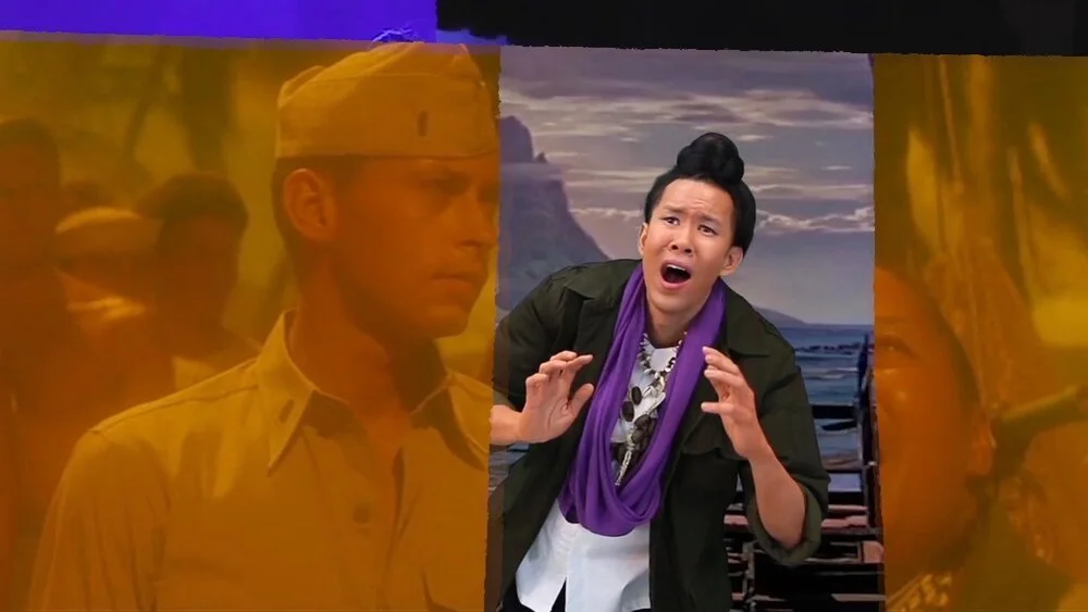 Ming Wong, Bloody Marys – Song of the South Seas, 2018, mixed media installation featuring a single channel HD video with stereo sound and archival material, 10 min 35 sec. Image courtesy of 2019 Asian Art Biennial.