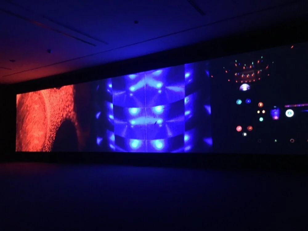 At one point, all three screens were showing bright, flashing lights from a home entertainment system, and the experience was intensified with the accompanying blaring music. It overloads you with a ferocity of control. We see for ourselves the relentless impact of the fourth industrial revolution.