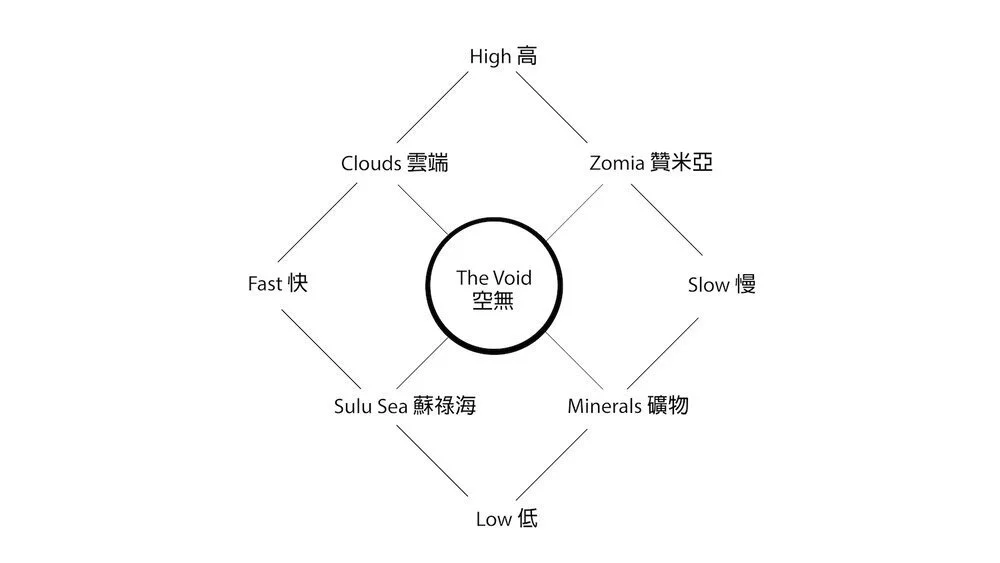See Wah: Yes, the title of this Biennial is The Strangers from Beyond the Mountain and the Sea. It’s a poetic way of expressing what the curators are doing: bringing in peripheral and decentralised ways of looking at relevant issues in our world today. For example, the post-Anthropocene, rapid technological revolution, and the ecological crisis. And I love the curatorial diagram. It’s a nice visualisation of the ideas they are exploring.