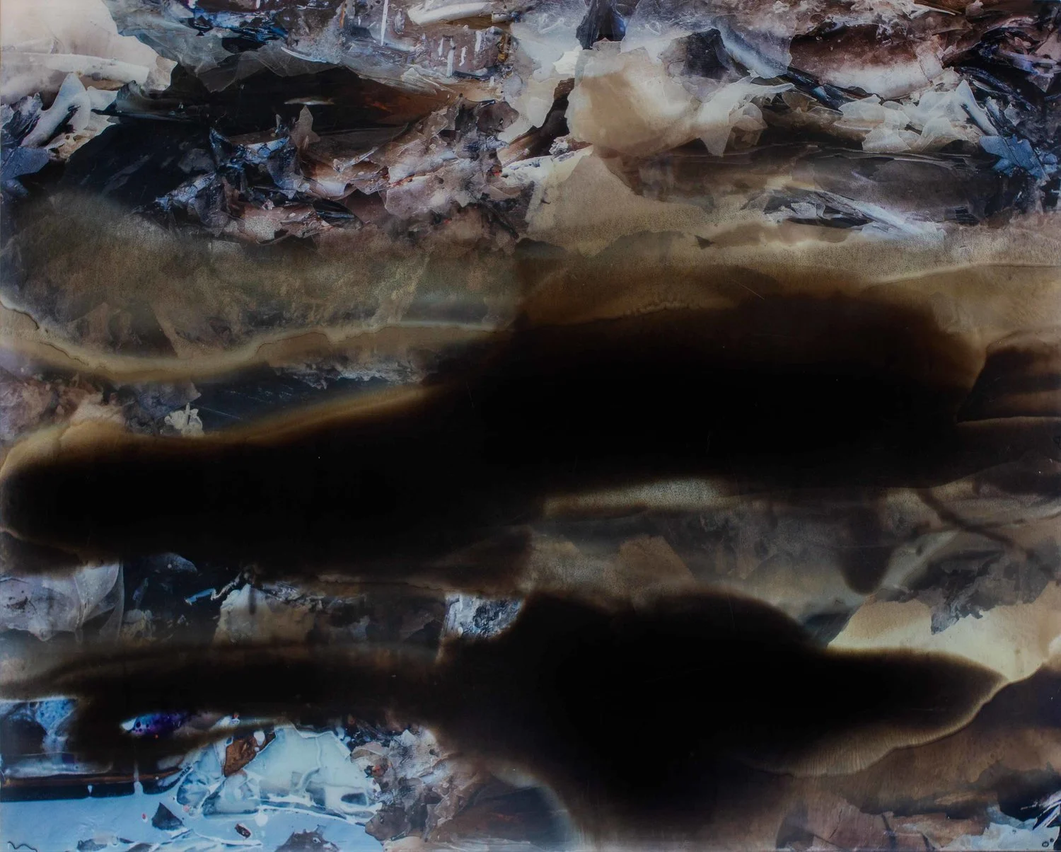 Departing from the dynamic splashes and cascading flows in earlier volcanic ash paintings, the ones in Argo are suggestive of landscapes with their horizon lines and stacked planes. In preparation for this body of work, the artist spoke to residents living near Merapi Volcano, famous for its violent eruptions. Their emotional memories of the eruption and its impacts formed a profound relationship between his native land and the material. Thus, Arin's translation of these experiences into abstract landscapes can be read as a gesture of preserving memory amidst changing natural surroundings.