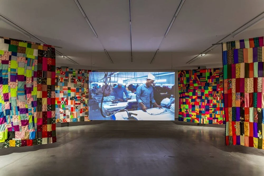 Piyarat Piyapongwiwat, Fabric, 2017, video, patchwork installation, 19 min 41 sec, dimensions variable. Image courtesy of MAIIAM Contemporary Art Museum.