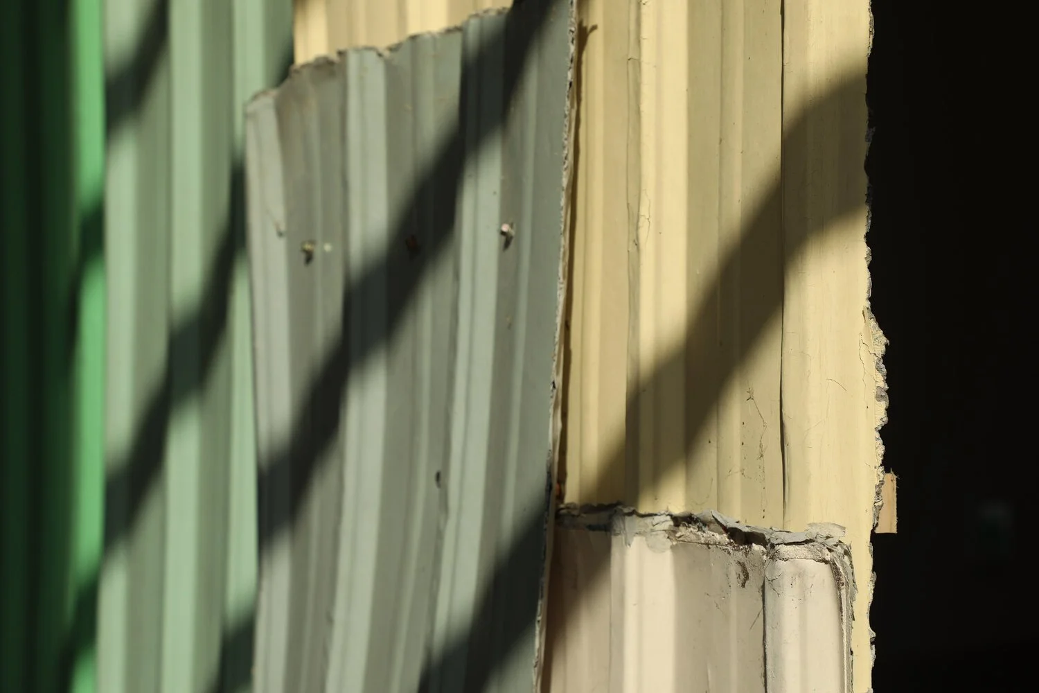 Chao-Hao Liao, Sheets Fences (detail), 2019, white glue, water-based pigment, paper pulp, wood. Image courtesy of Tainan Art Museum.