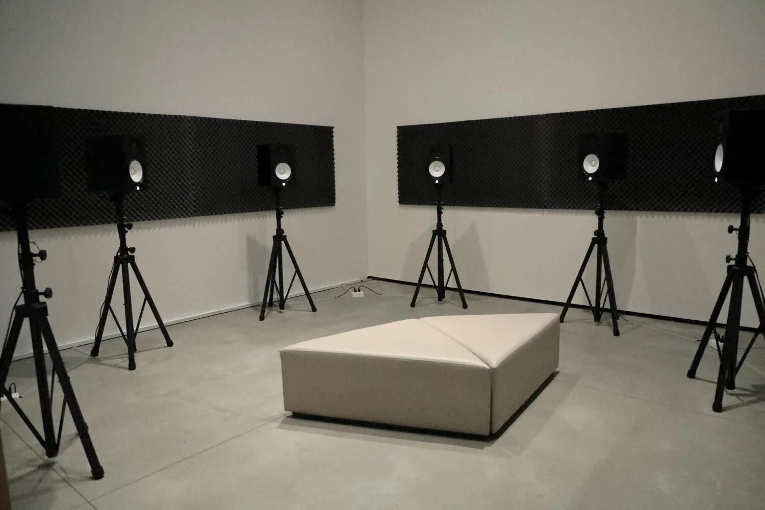 Jeremy Sharma, fidelity, 2018, sound installation. Exhibition installation view in SUPER-TRAJECTORY, at Tainan Art Museum. Image courtesy of Tainan Art Museum.