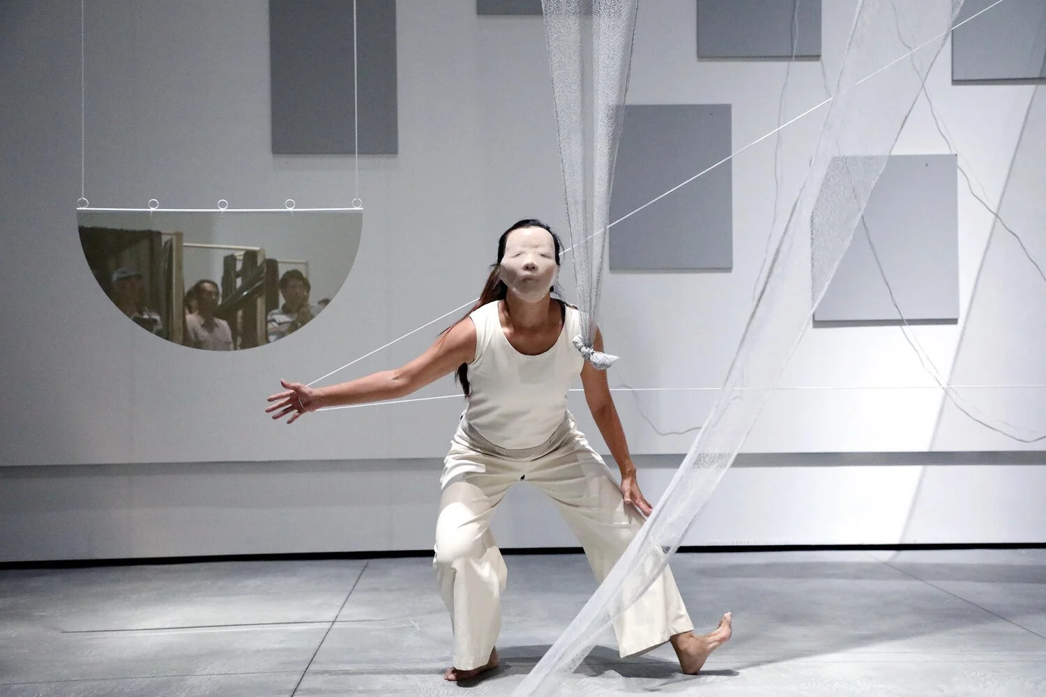 Ya-Wen Fu, Aiming, but where to IV, 2019, interactive sound-installation, video, performance. Photo documentation taken during the opening performance. Image courtesy of Tainan Art Museum.