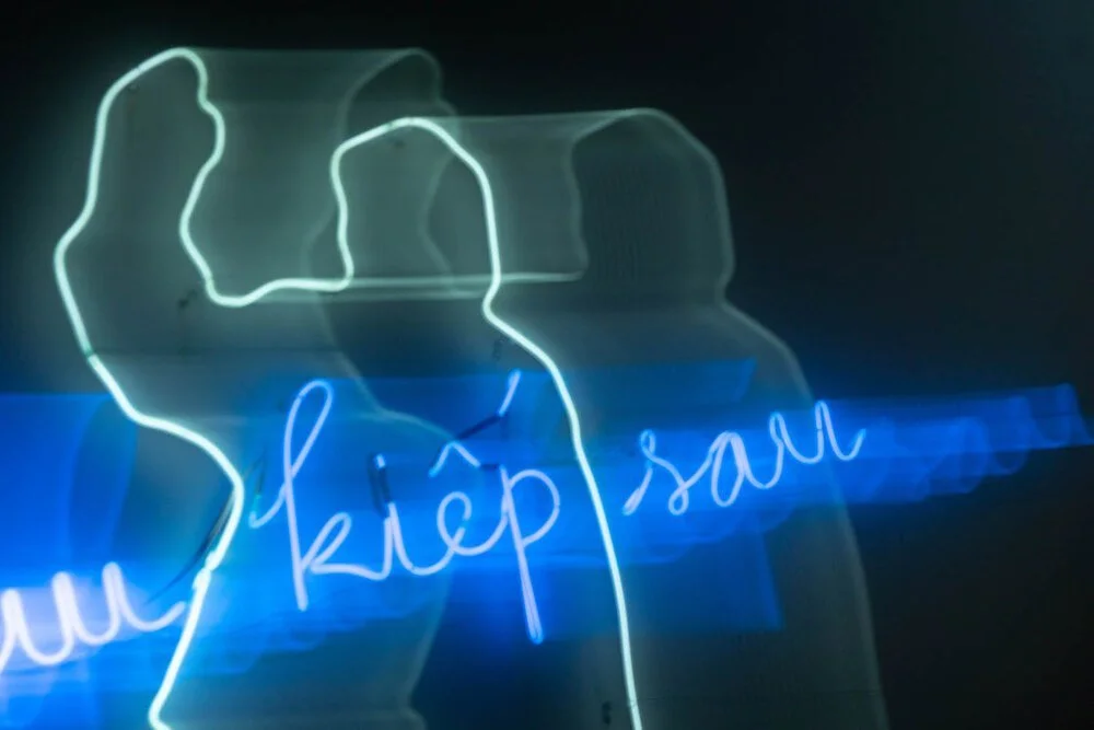Nguyễn Kim Tố Lan, Untitled (“Another life in which we find love”), 2019, neon light installation. Image courtesy of Sàn Art