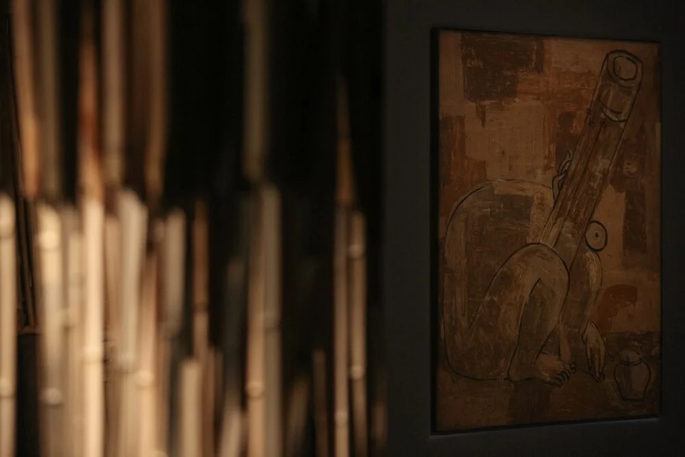 He drew thousands of sketches, starting with plain white paper, then moving to traditional Vietnamese Do paper, where flourishes of ink created a sense of movement. He experimented with oil, lacquer, and acrylic, but found these tools all lacked the sensation that Đàn Đó gave him when he listened to their music.“ Đàn Đó mostly works on the stage, and there is a focus on movement in their performances,” explained Phuong. “I couldn’t aim for realism, as it wouldn’t match their show. Instead, I wanted to create a feeling of folk art in an attempt to capture their spirit.”