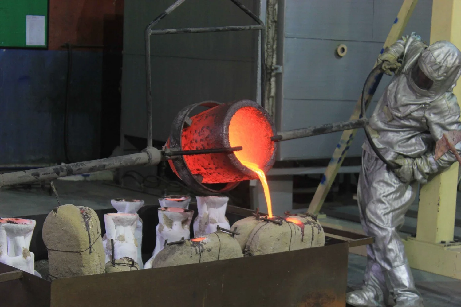 Liquid bronze is poured into sandcast and ceramic shells by craftsmen at Yogya Art Lab. Image courtesy of Rendy Erianda.