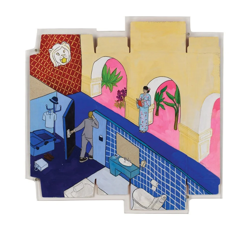 Sitting directly opposite the gallery door is a salon hang of contemporary works in various styles. From Lin Yen Wei’s Just Like the Way You Are (2014), a series of hyperrealist oil-on-canvas works featuring close-ups of handmade animal forms to to Ni Jui-Hung’s Singapore dreamin (2018), rendered on a Haitai cheese cracker box on unexpected planes, the distinctive humour in these works demonstrates Yeap’s eclectic tastes as an art collector, and encourages visitors to chart their own journey to “search and discover” art they enjoy.