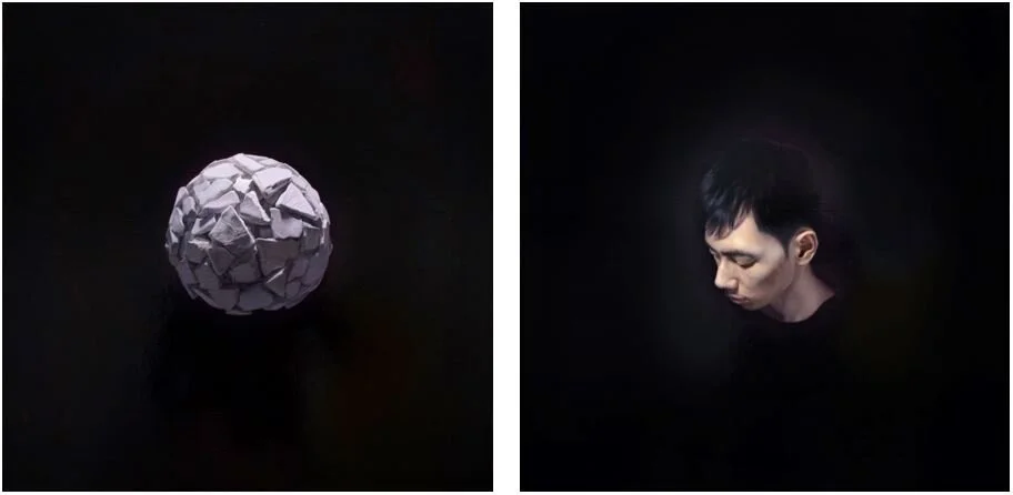 (Left) Loi Cai Xiang, The Self, 2019, oil on canvas, 61 x 61 cm. Image courtesy of the artist and Chan + Hori Contemporary. (Right) Loi Cai Xiang, 'The World', 2019, oil on canvas, 61 x 61 cm. Image courtesy of the artist and Chan + Hori Contemporary.