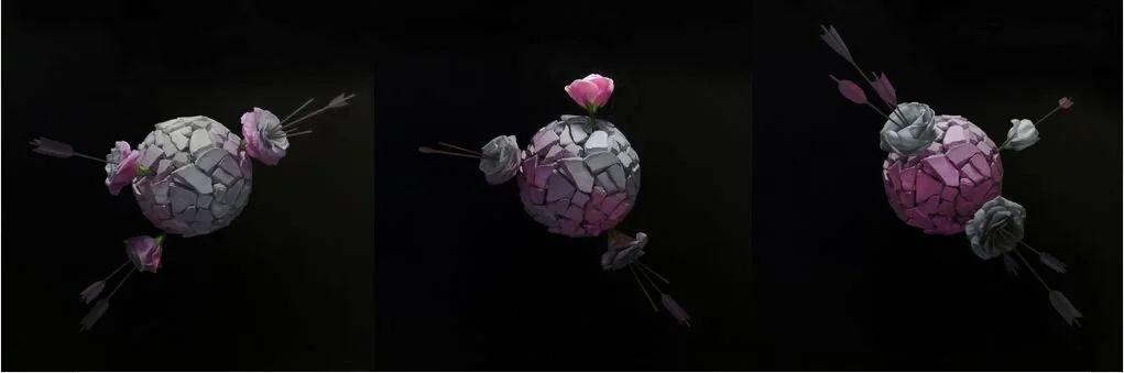 Loi Cai Xiang, Killing Innocence (triptych), 2020, oil on canvas, 61 x 61 cm each. Image courtesy of the artist and Chan + Hori Contemporary..