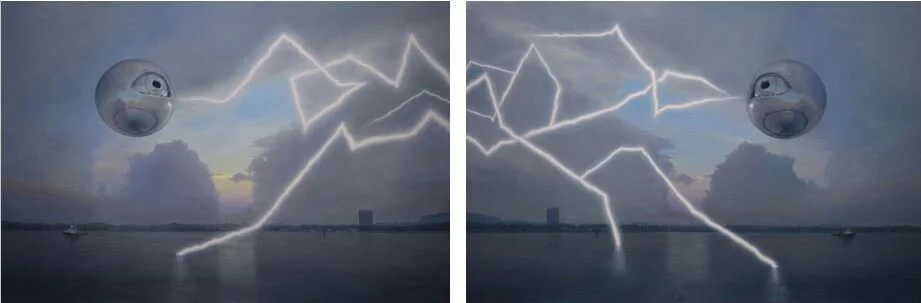 Loi Cai Xiang, Homeostasis (diptych), 2019, oil on canvas, 61 x 91 cm each. Image courtesy of the artist and Chan + Hori Contemporary.