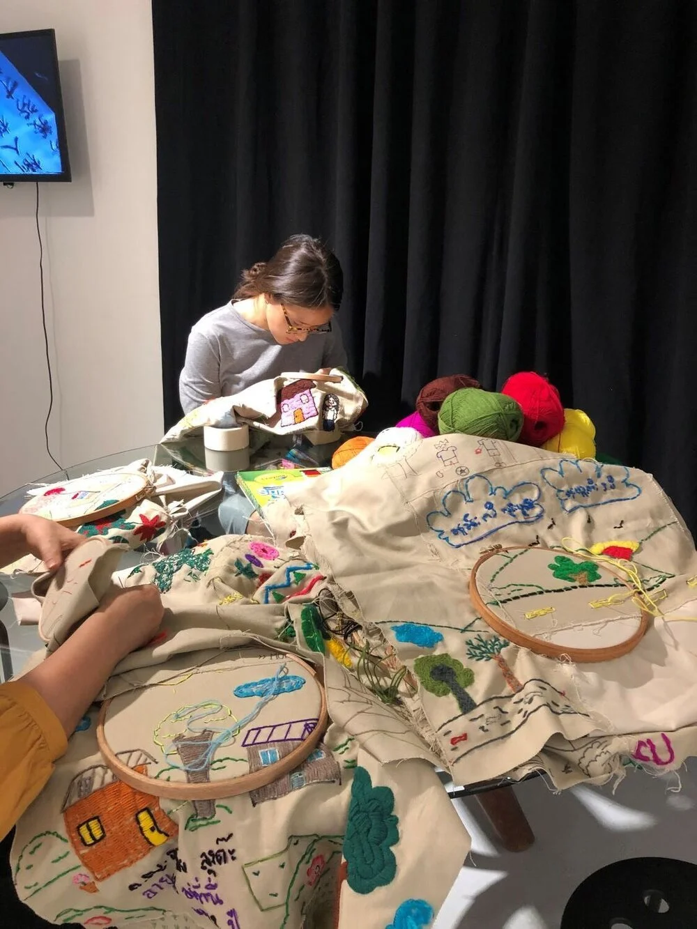 Jakkai Siributr, There’s No Place, 2020-ongoing, participatory embroidery installation, threads, cotton fabrics. Image courtesy of the artist.