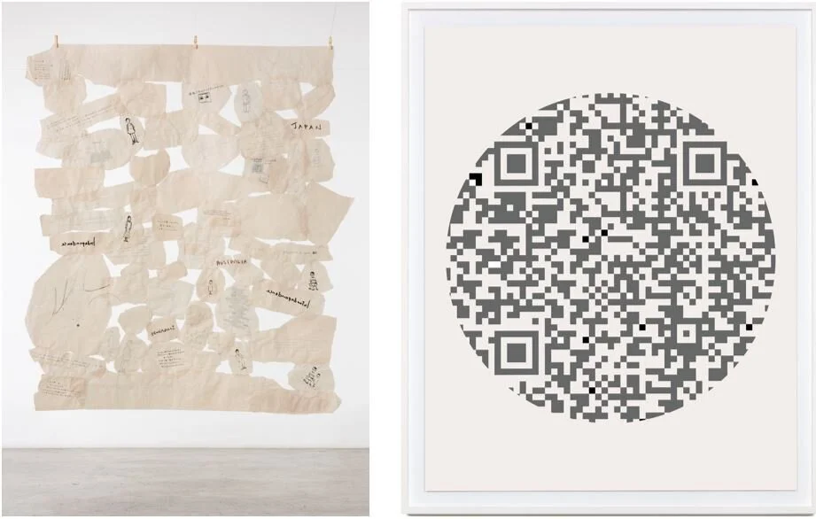 Amanda Heng, Haruka Hikita - Independence/Interdependence, 2016, Screenprint on STPI handmade Kozo paper; c-type print with QR code for video (04:09 min), 153 x 138cm; 167 x 136.5 x 7cm. Produced at STPI – Creative Workshop & Gallery, Singapore. © Amanda Heng / STPI. Photo courtesy of the Artist and STPI.
