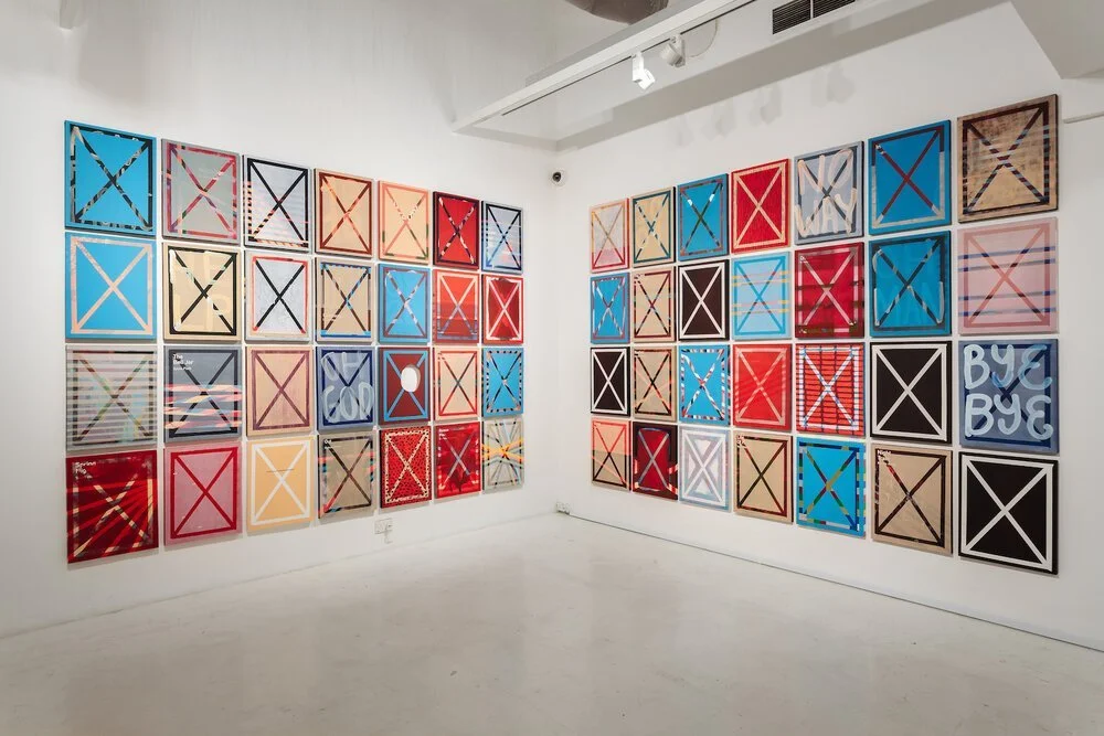 Heman Chong, Circuit Breaker Paintings, 2020, exhibition view. Image courtesy of STPI – Creative Workshop & Gallery, Singapore.