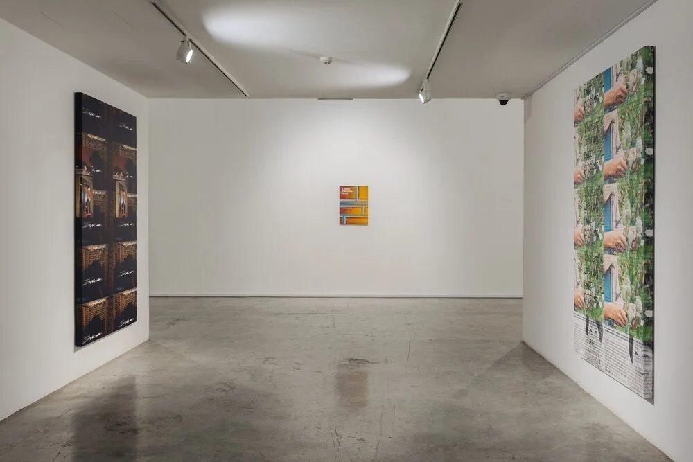 Returning to Duchamp’s quote at the beginning, to put “painting at the service of the mind” is also to broaden one’s scope of vision and look at the expanded field of painting. In displaying images of sensitive locations or appropriating copyrighted material, the exhibition presents multiple instances of the genre seeping into systems of information and brushes with the law. Chong’s act of handpainting real QR codes in Safe Entry (Version 2.0-2.7) (2020) manifests this relationship literally, as upon “viewing” the work through a QR code reader, one is directed to the artist’s ‘Ambient Walking’ video on Youtube. Painting becomes a porous interface for ideas and facets of contemporary life to pass through.