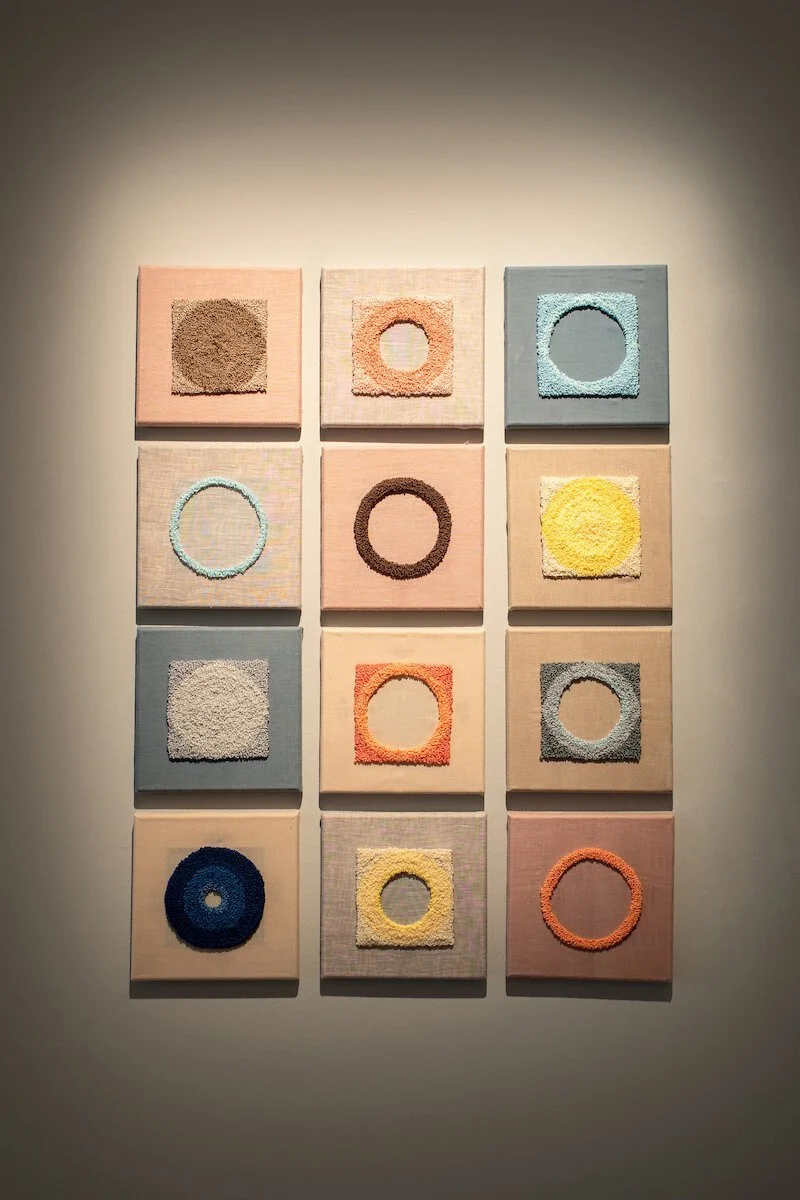Hazel Lim, Squaring the Circle, 2021, linen, DMC thread. Image courtesy of the Esplanade.