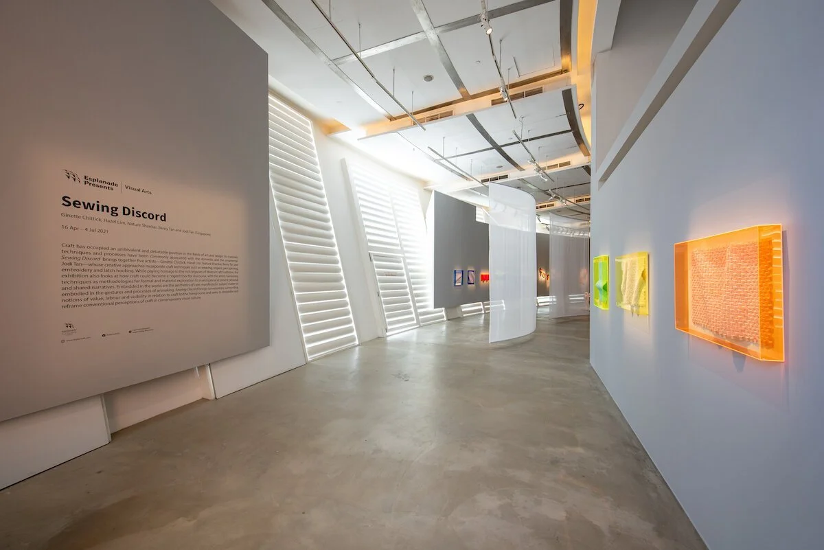 Exhibition view of Sewing Discord at Esplanade Jendela (Visual Arts Space). Image courtesy of the Esplanade.