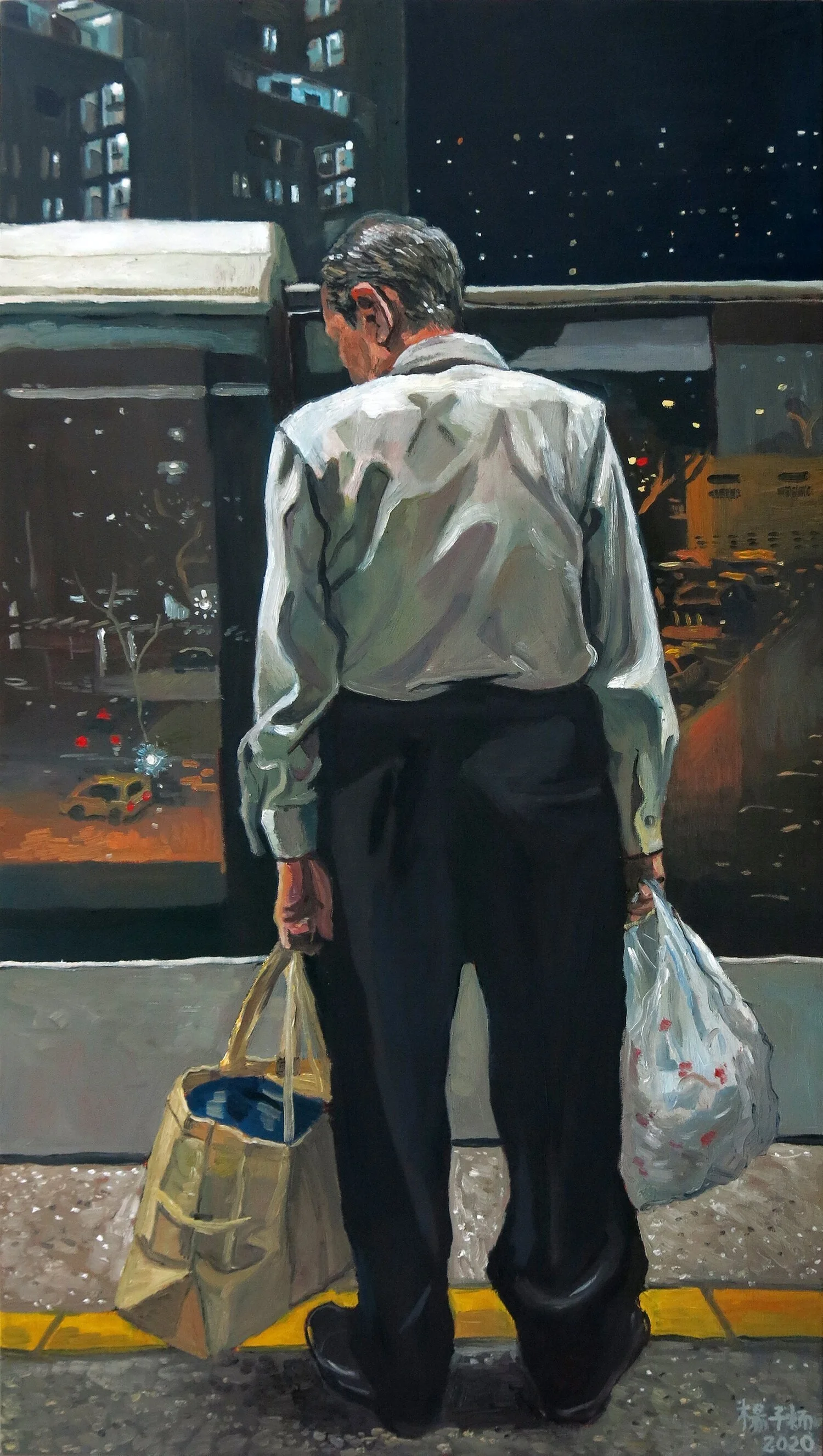 Man Waiting On The Platform, 2020, oil on canvas, 100x55cm. Image courtesy of SEED Art Space.