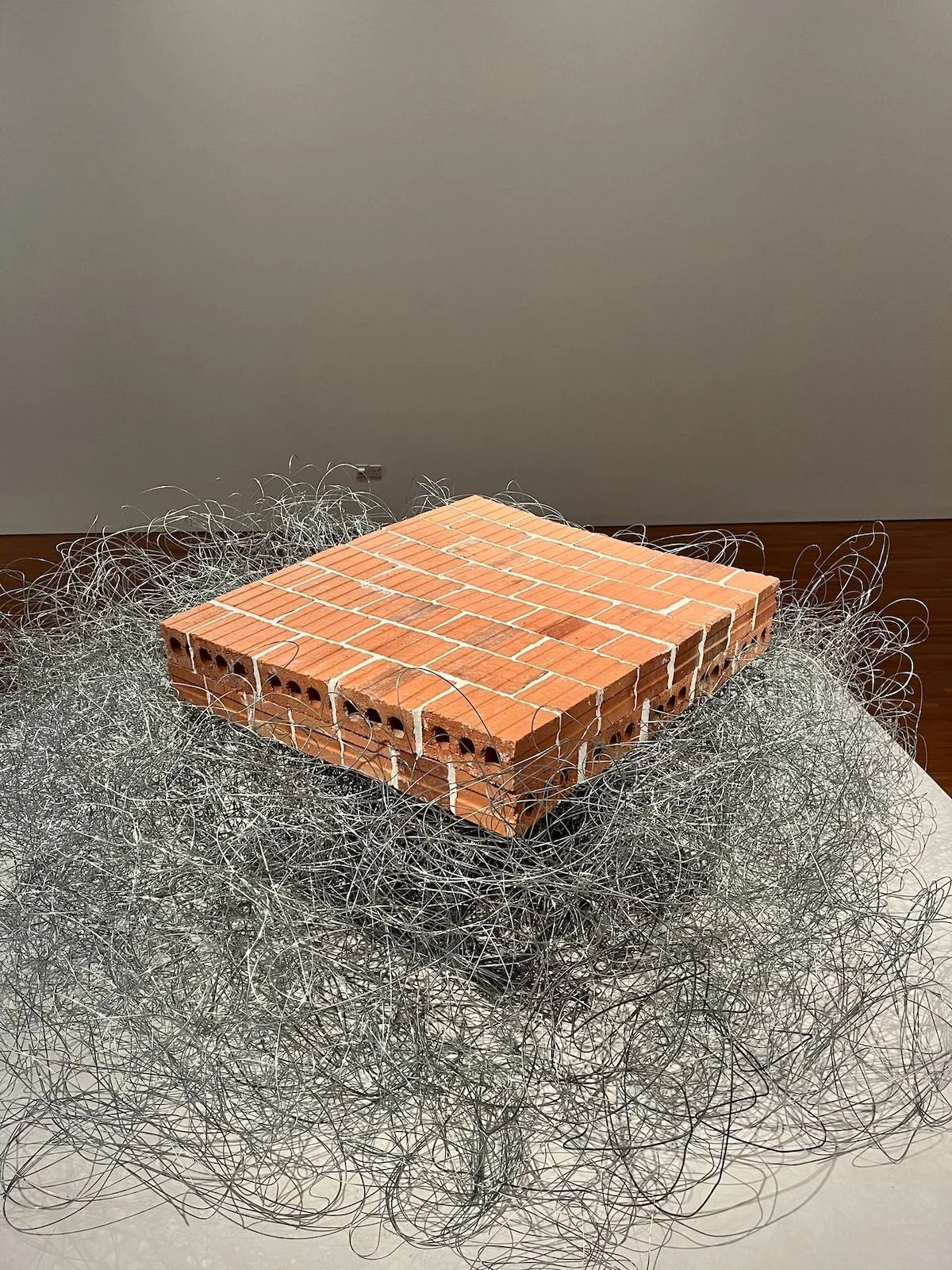 Tang Da Wu, Cloud of ‘68, 1971 remade 2022, bricks, barb wire, steel wire and metal plates, dimensions variable. Collection of the artist. Image courtesy of National Gallery Singapore.