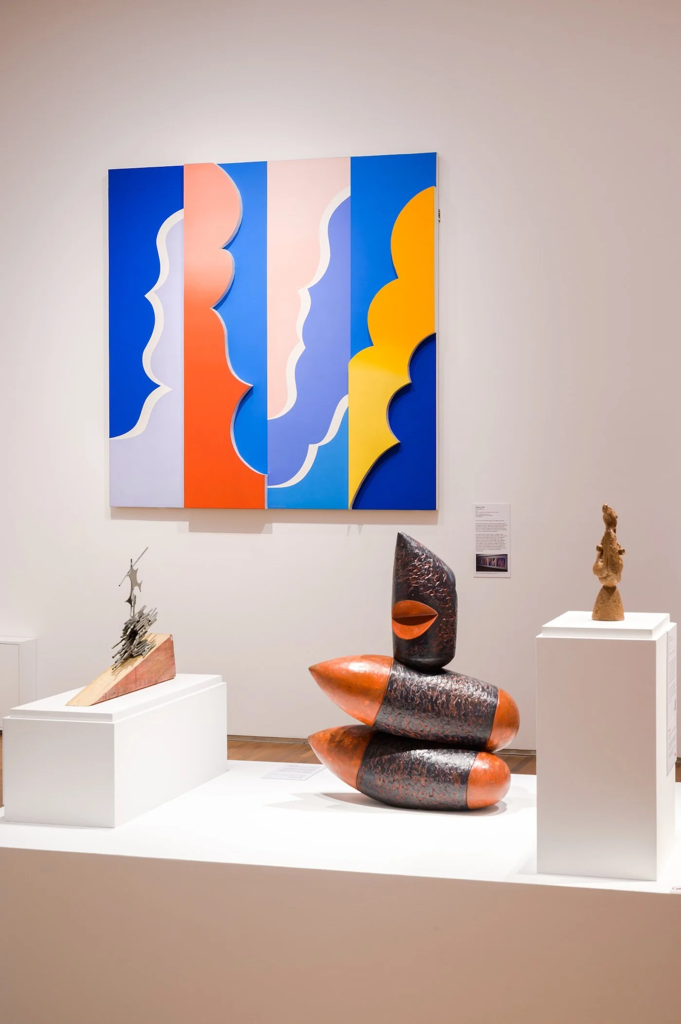 Kumari Nahappan, Almanac Series #01-04-Campbell Lane to Tank Road, 1991, acrylic paint, canvas, wood and copper alloy, dimensions variable. Exhibition view in Nothing is Forever: Rethinking Sculpture in Singapore. Collection of Singapore Art Museum. Image courtesy of National Gallery Singapore.