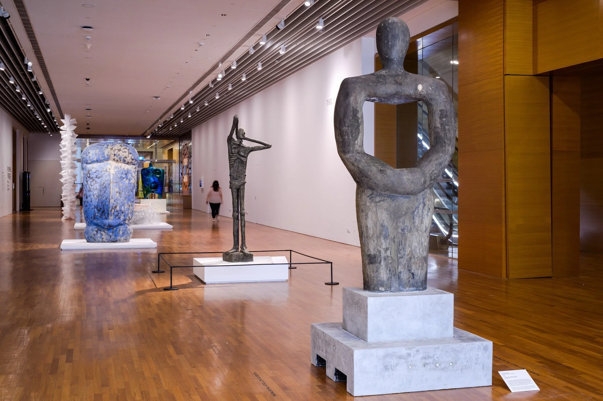 I also wish for more beauty and coherence in the corridor space given to large-scale works as it seems like the only trait connecting this group of works is their size. While I appreciate the intention to evoke the feeling of a sculpture park, what is missing is an interaction between the sculptures and the architecture. The pieces that look great are those that respond to the space or echo the materials and textures found in it, such as Lim Leong Seng’s New Era (1976), Tang Da Wu’s Cloud of ‘68 (1971, remade 2022) and Vincent Hoisington’s Entrepreneur (undated).
