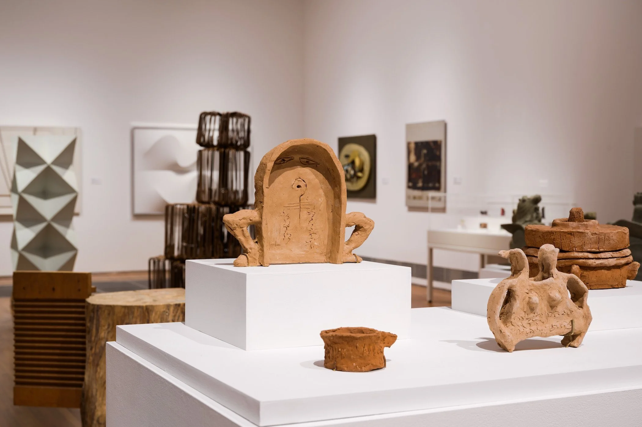 That said, the exhibition layout is not without its flaws. At times, aesthetics is traded for efficiency or practicality. As a result, the installation of certain artworks looks compromised. For example, Kim Lim’s Steps (1967) and Han Sai Por’s Tetrahedron-tetrahedron Interpenetration (1993) seem to function primarily as case studies among the cluster of white monochromatic works, which is a shame because they are highly elegant sculptures. The decision to display Steps against the wall is particularly unfortunate as it completely flattens the sculpture, blending it into the background.