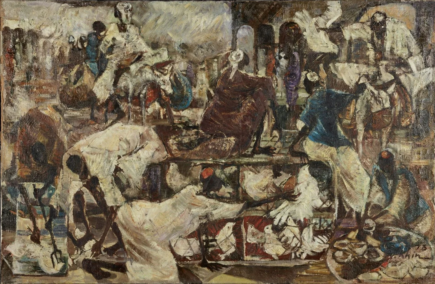 You Khin, Untitled (Meeting Above Pigeon Cages), 1978, oil on canvas, 65 x 100cm. Collection of National Gallery Singapore.