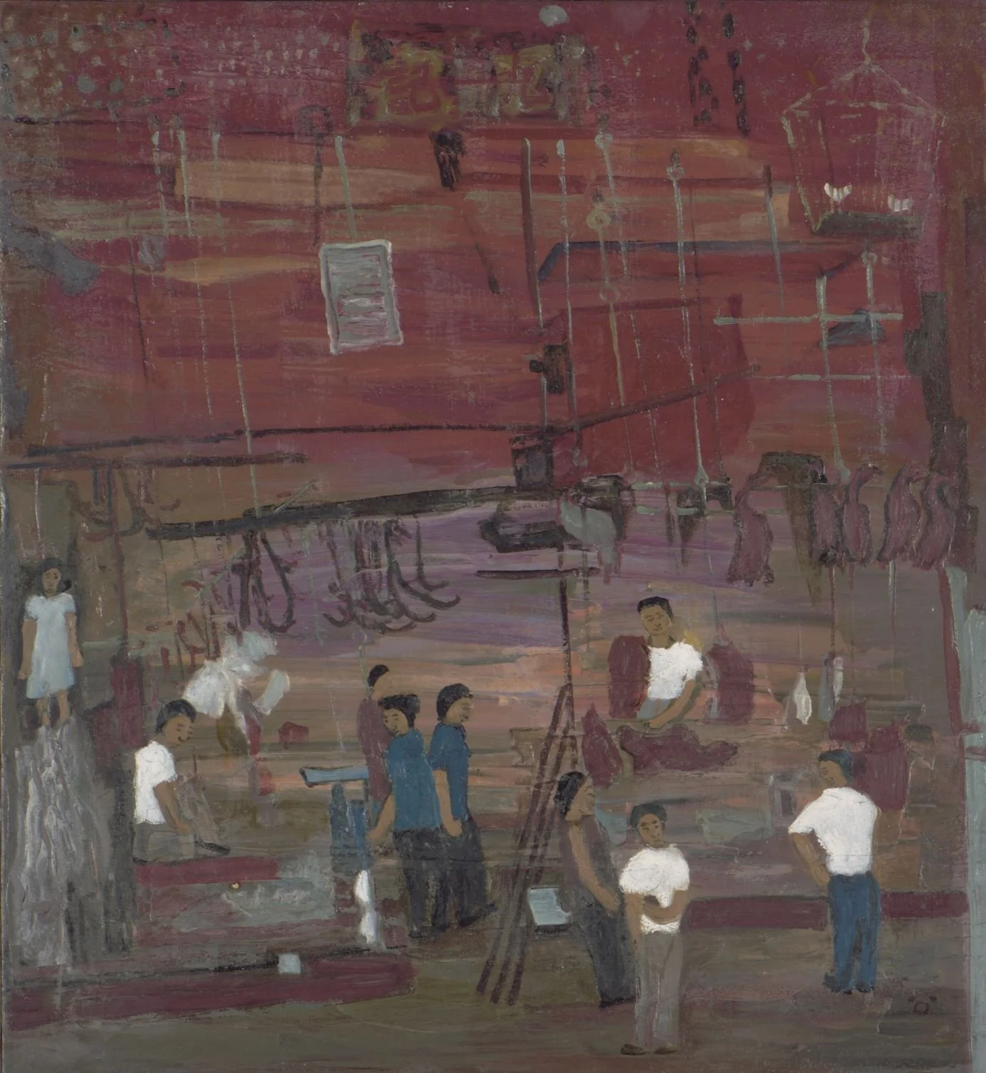 Chen Cheng Mei, Market, 1980, oil on canvas, 83.5 x 76.5cm. Gift of anonymous donor. Collection of National Gallery Singapore.