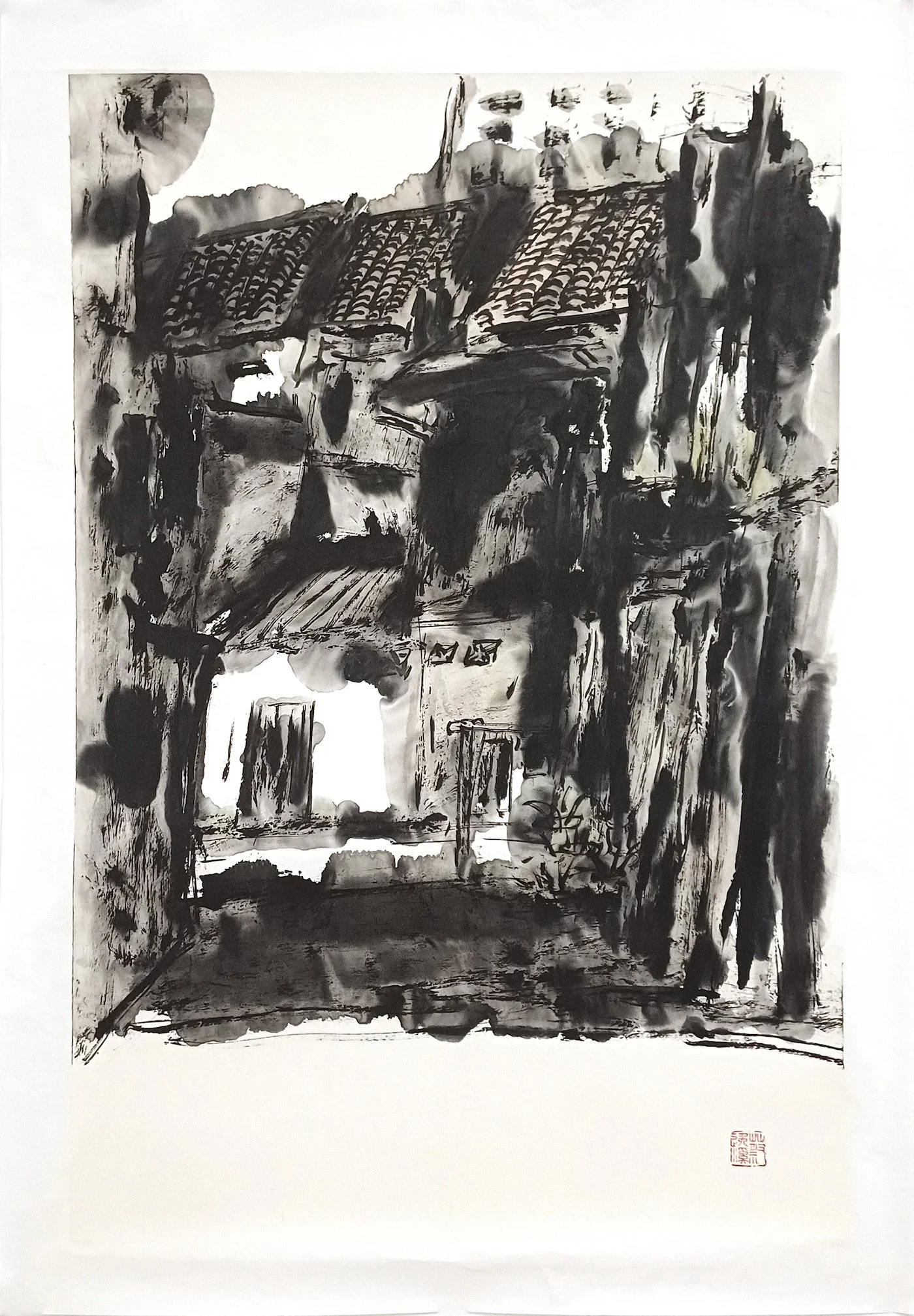 Chua Ek Kay, Old House’s Back Alley or 旧屋后巷’, undated, ink on rice paper, 70 x 47cm. Image courtesy of Gajah Gallery.