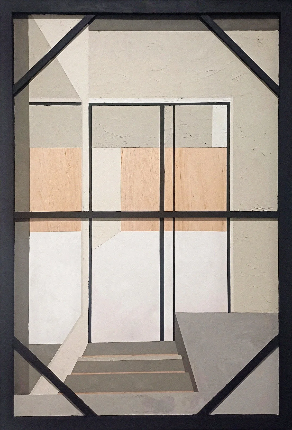 Kayleigh Goh, Black Geology, 2023, acrylic, graphite, and cement on wood, 150 x 100cm. Image courtesy of the artist and Gajah Gallery.