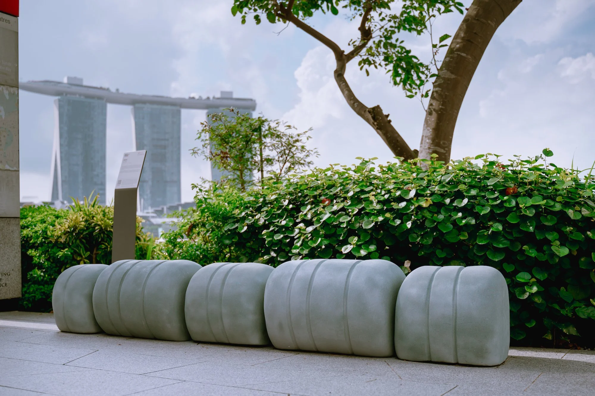United by the theme of punctuation marks as a visual metaphor, these benches are part of a six-stop art trail titled Benchmarks, the first public art initiative within the Civic District. It features the work of six Singapore-based artists: Immanuel Koh, Jason Wee, Jeffrey Tan, Joyce Beetuan Koh, Lua Boon Kai and Yang Jie. Each bench serves as a place to pause, allowing visitors to appreciate the rich historical and cultural significance of their surroundings.