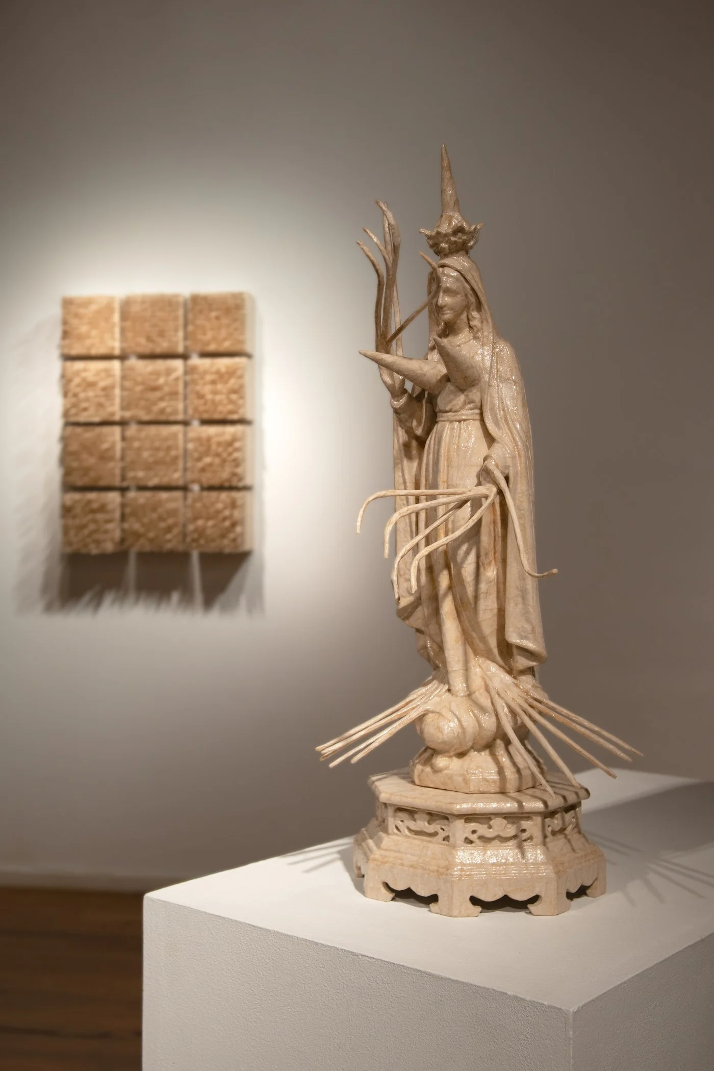 Le Hien Minh, Blessed Lady of the Nail, 2023, traditional Vietnamese handmade Dó paper, resin, wood, 73 x 27 x 27cm. Photo by Laurel Hauge.