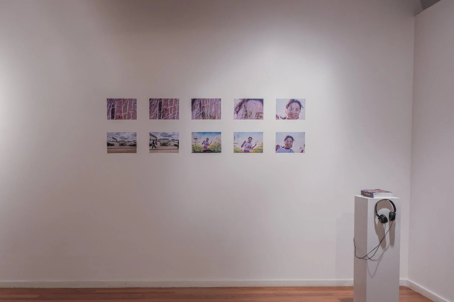 Maya Nguyen, (L-R) Poster Girl, 2023, colour photographs, 20 x 27cm;. Beginner, 2023, Vietnamese-German Dictionary, language exercises prompts, sounds of a Vietnamese-German infant. Image courtesy of the artist.