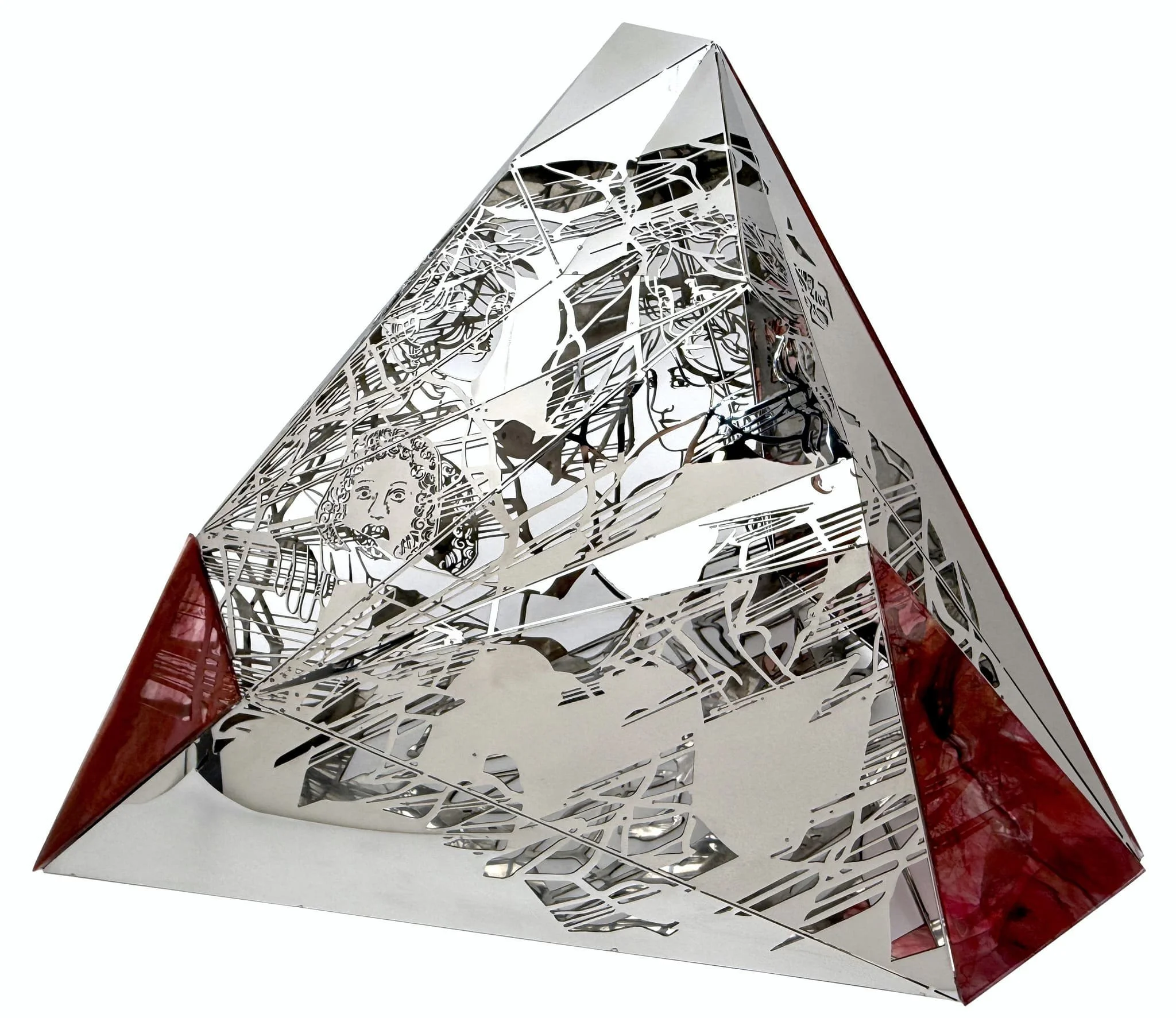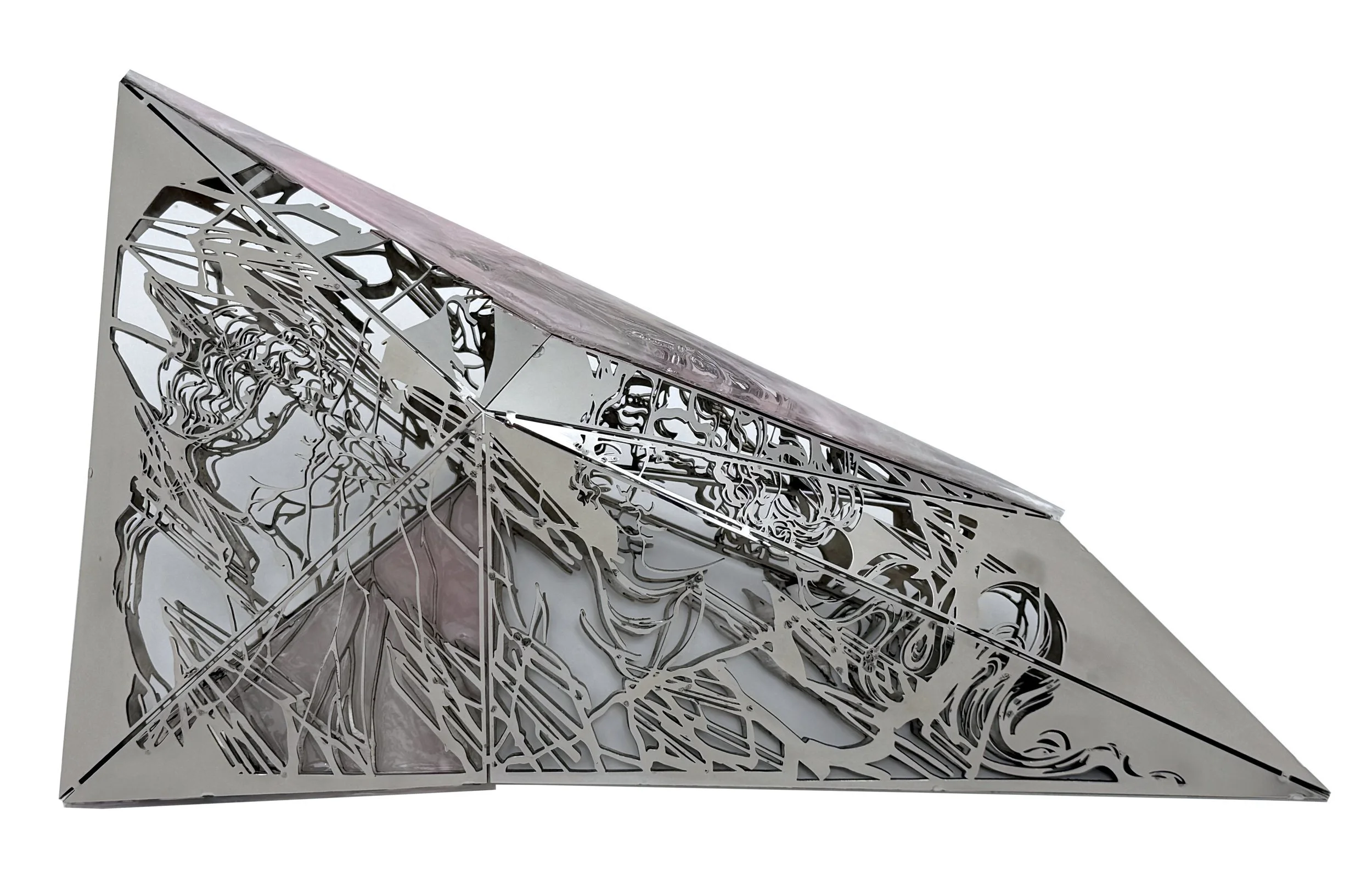 Melissa Tan, Melpomene, 2024, mirror finish stainless steel, epoxy resin and pigment, 64.5 x 46 x 36cm. Image courtesy of the artist and Haridas Contemporary.