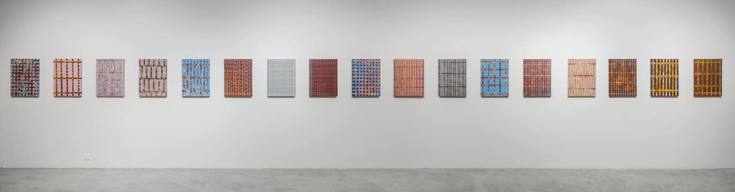 Facing the Library are paintings from the Labyrinths (Libraries) (2022) series. Composed of deceptively straightforward compositions of heavily textured grids and thick lines, each work is meant to echo the physical layouts and trains of thought associated with libraries. Compared to the prior two works, this series, in its abstract representation, is too opaque for my liking.