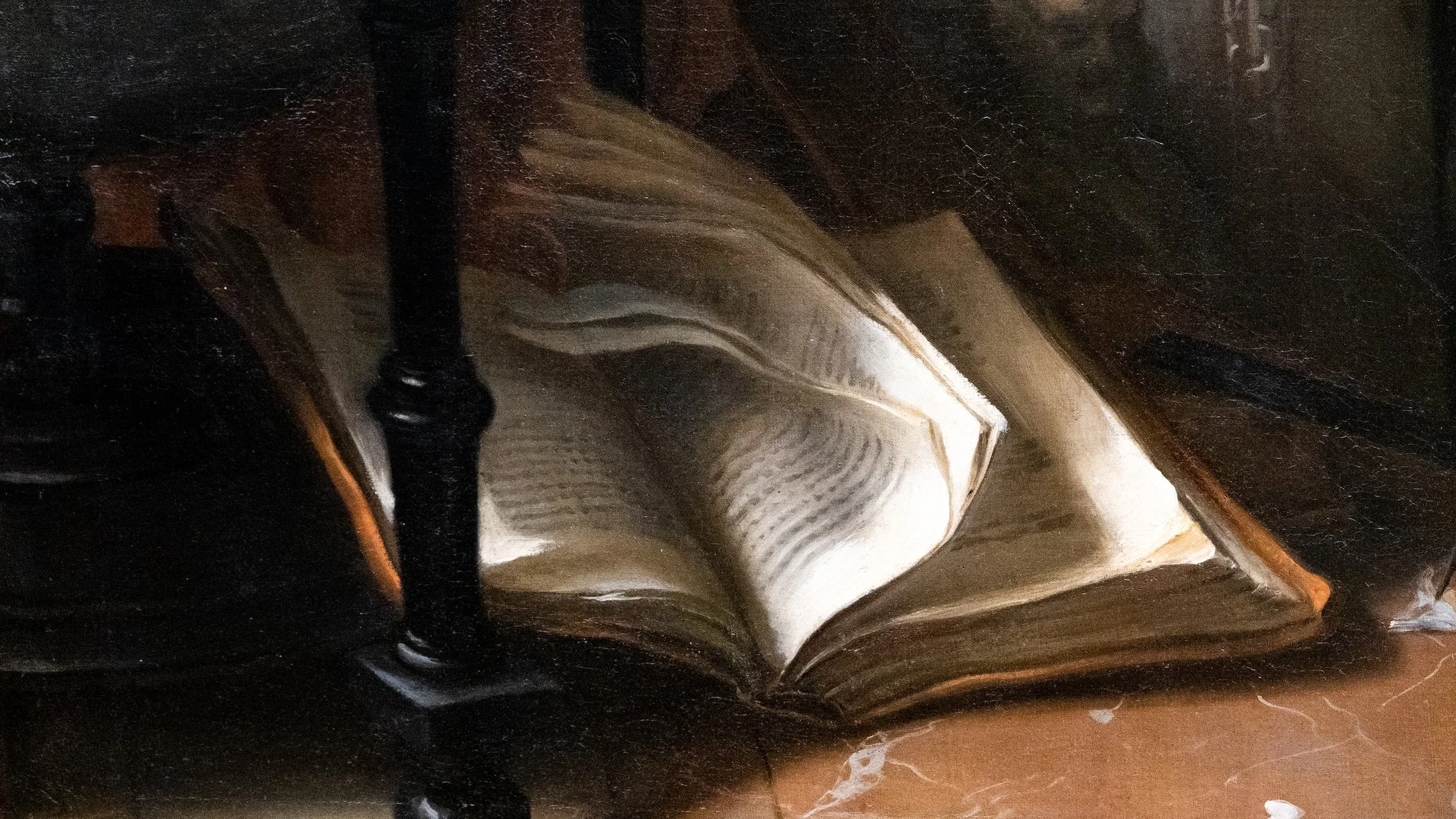Every photograph is an extremely close-up shot, highlighting cracked textures and paint strokes from each original artwork. The bibliophile in me enjoyed seeing Chong’s curated selection of books from historic artworks decontextualised from their original compositions. Furthermore, I see a compelling parallel when Oleanders is installed alongside The Library of Unread Books, as both lack explicit provenance.